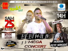 BITEL COMMUNICATION et YOUKI présentent l’artiste multiple talents BEBI PHILIP en méga concerts ce Samedi 25 Avril 2015 à partir de 14H à Faso Parc et ce Dimanche 26 Avril 2015 à partir de 20 heures au Théâtre de l’Amitié de Bobo-Dioulasso.