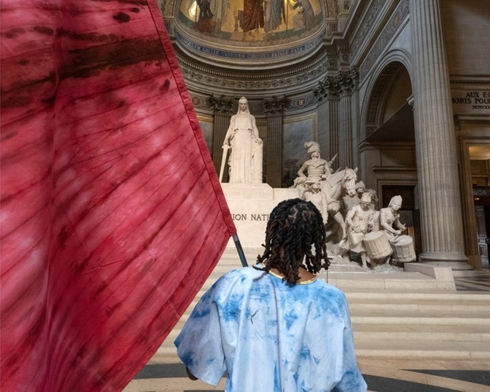 L’exposition s’inscrit dans le cadre du programme «un artiste / un monument» initié par le Centre des monuments nationaux, qui invite des artistes contemporains à investir des lieux patrimoniaux. Elle est accompagnée d’une performance au Panthéon qui a eu lieu dimanche 22 octobre à 16h30, en présence de l’artiste, du rappeur américain Mike Ladd, et du collectif Mas Choukaj.