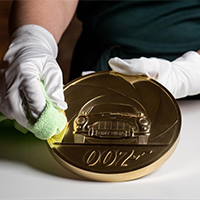 Pour honorer “James Bond”, la Monnaie royale britannique a créé une pièce d’or de 7.000 livres ( soit 8.000 euros ou 5.000.000 francs CFA) et 7 kg. Sur cette pièce de 7kg figure la légendaire Aston Martin de l’agent secret – avec sa fameuse plaque BMT 216A -, représentée à l’intérieur du canon d’un pistolet. Produite en un unique exemplaire, il s’agit aussi de « la plus large pièce jamais réalisée par la Monnaie royale », précise son site internet.