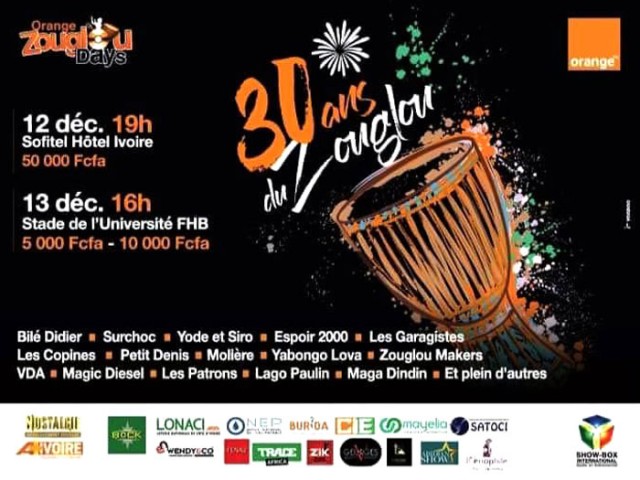 Le Zouglou célèbre ses 30 ans d’existence ce samedi 12 et dimanche 13 décembre à Abidjan. Bilé Didier, Surchoc, Yodé et Siro, Espoir 2000, les Graragistes, Les Copines, Petit Denis, et d’autres figures du Zouglou seront présents à la célébration inédite du trentenaire de ce célèbre genre musical ivoirien.