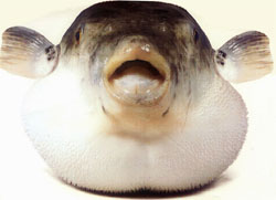 Tout d’abord, le fugu n’est pas un poisson en particulier. Il s’agit d’un nom générique donné par les Japonais à plus d’une centaine d’espèces appartenant à plusieurs genres. Ces poissons sont des Tetraodontidés (des bébêtes à 4 dents si vous préférez). Il y a là les Diodons ou poissons porc-épic, les Sphoeroides, les Lagocéphales et les Takifugu. Tous ont des caractéristiques communes.