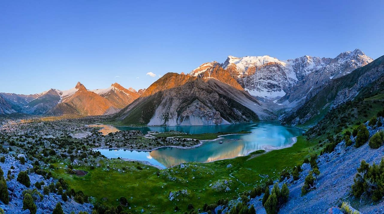 Si l’Est du pays est aride, l’Ouest est plus vert. C’est la région des monts Fann. Ici, on trouve des sommets enneigés et de nombreux lacs de couleur turquoise ou bleue. C’est le meilleur endroit du Tadjikistan pour faire de la randonnée ou du trekking.